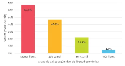 En tercer lugar, nuestro país debería de buscar la mayor apertura comercial posible a través de medidas tanto unilaterales como multilaterales. Reformas apoyadas en estos tres pilares traerían consigo mayor libertad económica para todos los uruguayos, respecto a lo cual existe evidencia internacional de que la incidencia de la pobreza es menor en los países más libres respecto a los países menos libres.