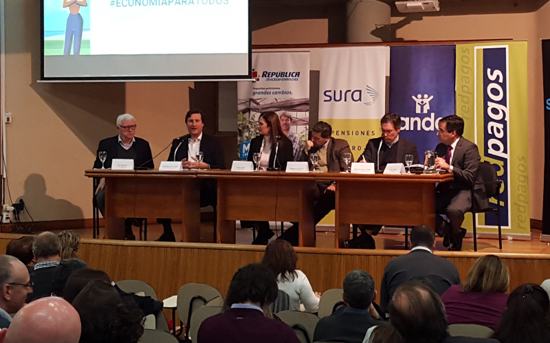 Así se desarrolló el debate, del que también participaron el CEO de SURA Asset Management Uruguay, Gonzalo Falcone, la presidenta de ANDA, Elisa Facio, el gerente general de Redpagos, Francisco Bello y el gerente general de República Microfinanzas, Luis Murias.