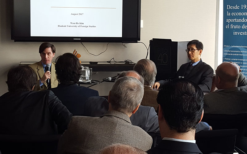 Con un territorio del 60% de Uruguay, Corea del Sur se presenta como una oportunidad para el comercio por su fuerte demanda de alimentos, y su oferta en tecnología y productos de alta industrialización. El profesor Won-Ho Kim presentó ante integrantes de la Academia Nacional de Economía las oportunidades que ofreceel país asiático, y la importancia que para esa nación representa América Latina.Corea del Sur se ha posicionado en los últimos años como una de las potencias económicas de Asia Pacífico. Un país aliado de Japón y de Estados Unidos, a espaldas de su hermano mellizo díscolo, se ha desarrollado como una potencia tecnológica en los últimos 20 años, que ha salido a buscar liberalizar el comercio en el mundo entero.