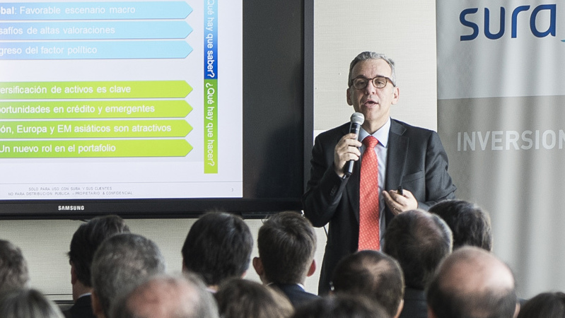 El protagonismo de la coyuntura política en las inversiones, la variabilidad en las clases de activos y el actual escenario económico fueron algunos de los desafíos planteados por Axel Christensen, director de Estrategias de Inversión de BlackRock para América Latina e Iberia en la charla presentada por SURA Asset Management Uruguay.Lo que a principios de año se presentaba como un escenario de incertidumbre mutó a un año con un desempeño muy bueno en la economía mundial, sostuvo el especialista en inversiones, al inicio de su análisis sobre el entorno macroeconómico global frente a los empresarios e inversionistas que lo escucharon en el Piso 40 del World Trade Center.