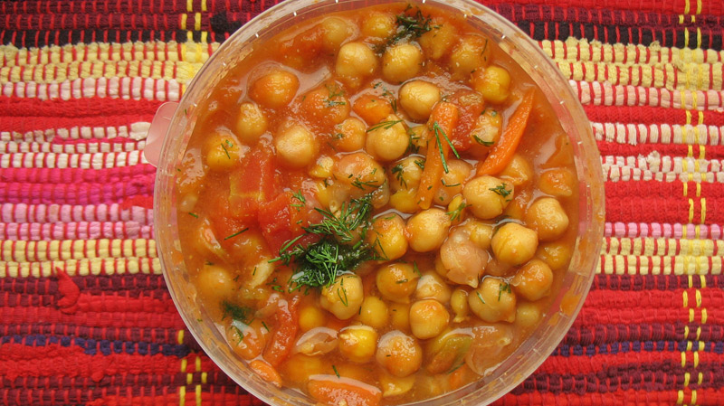 Para elaborar 2.500 kilos de cazuela de garbanzos se necesitan 76 kilos de cebolla; 76 kilos de morrón; 5,3 kilos de ajo en polvo; 76 kilos de zanahoria; 350 kilos de garbanzos; 260 kilos de chorizo colorado; 400 kilos de papa; 15 kilos de pimentón; 7,5 kilos de sal; 3,5 kilos de pimienta blanca; 400 kilos de salsa de tomate; 120 kilos de panceta y 300 litros de aceite.